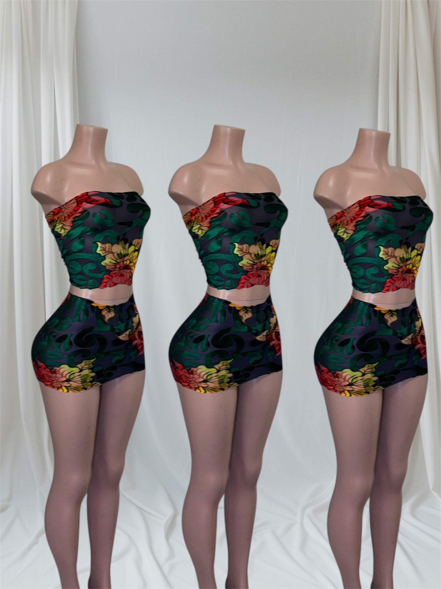 Step into effortless style with our Devoré Velvet Set Featuring a feminine velvet mesh floral print, a flattering bandeau top, and a mini skirt it is perfect for brunches, parties, or any day you want to feel effortlessly stylish. Lightweight and comfortable, it moves with you while