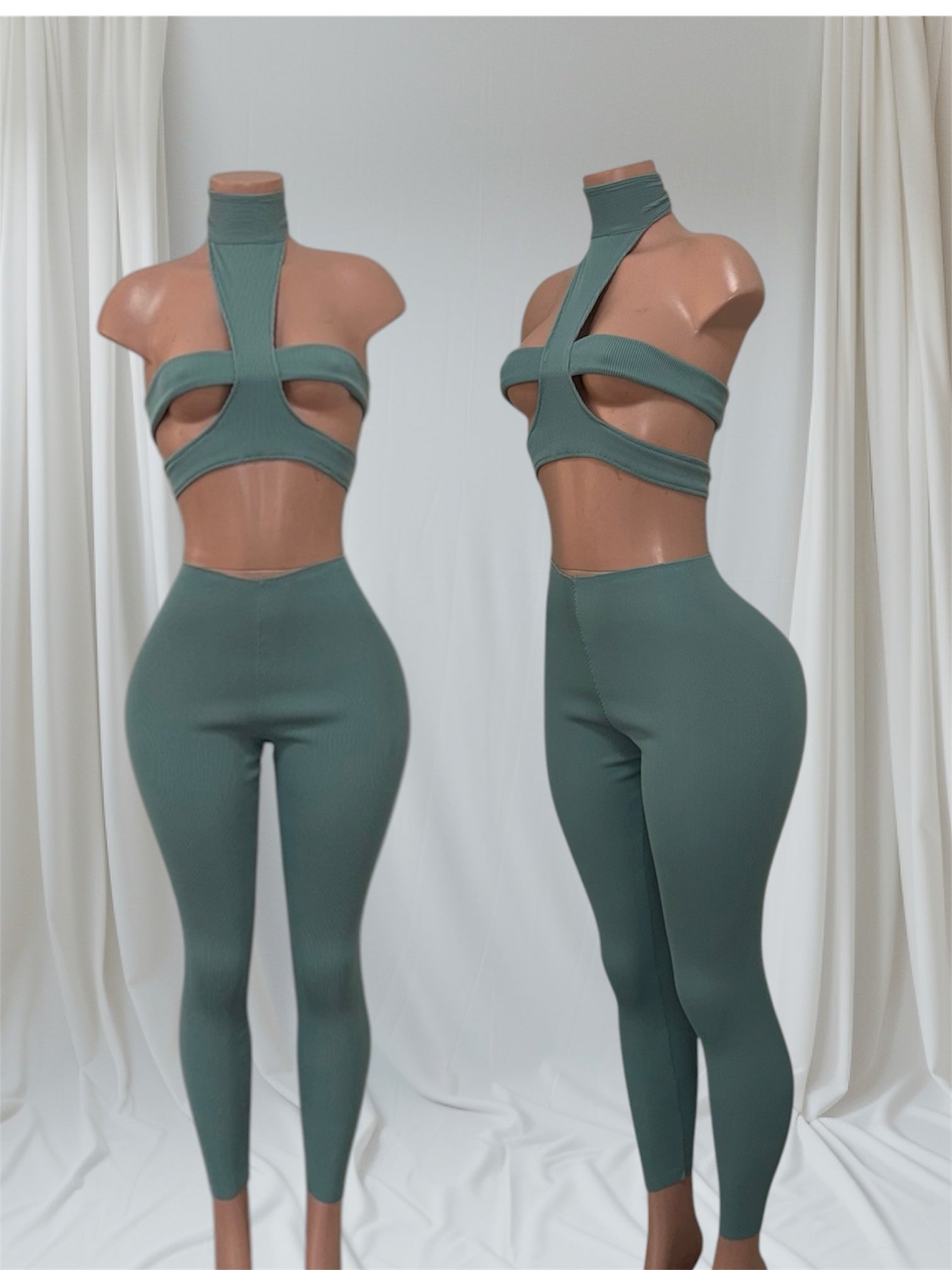 Step into your silhouette with the Line up set the set that does it all — stretch, sculpt, and stun. This two-piece includes a bold halter-style crop top with signature chest cutouts, paired with matching high-waisted leggings that hit right at the ankle. Crafted from ultra-soft ribbed knit with a perfect amount of stretch, it hugs in all the right places without sacrificing comfort.