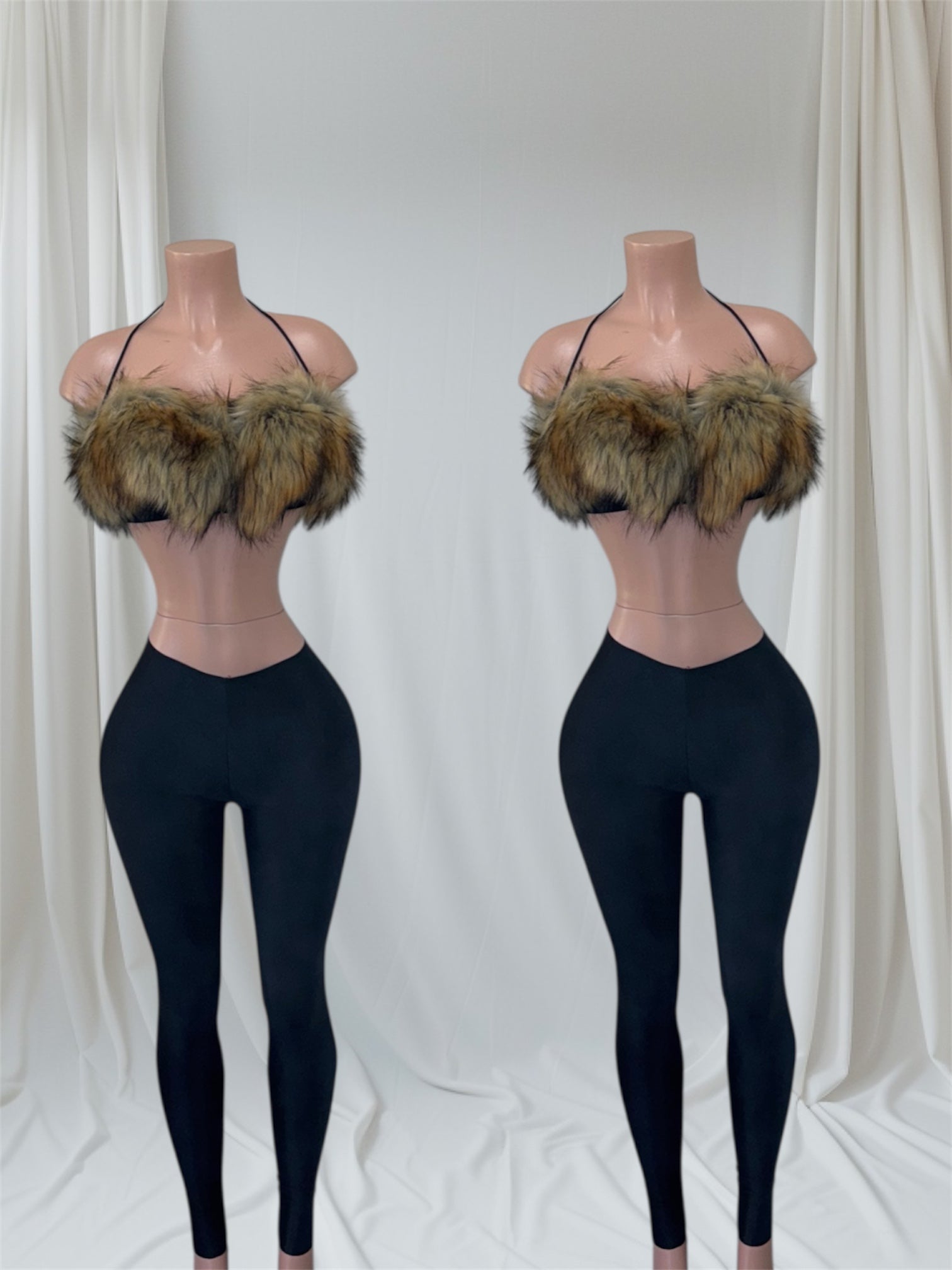 Soft fur meets sleek spandex in the Midnight Tease Set. This bandeau crop top with matching V-cut leggings is made to move with you sexy, effortless, and unforgettable.
